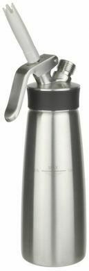 Indhold: 1 stk ISI Sifonflaske i 0,5-liters størrelse leveres med 2 forskellige mundstykker, så du har et valg. Den professionelle sifonflaske fra anerkendte ISI er i super kvalitet. Hvilket du vil opleve, så snart du får den i hænderne. Den er bl.a. udstyret med et specialdesignet rustfrit stål håndtagssystem, der gør den perfekt at dosere med. Det højkvalitets polerede rustfrit stål har ætsede mærker, som angiver den maksimale volumen. Derudover har den et metalhoved med aftageligt rustfrit stål-stempel. Dette sikrer en nem og hygiejnisk rengøring efter hver brug. Du vil altid opnå rene, naturlige smagsnuancer på få sekunder med denne flødesifon. Her er virkelig tale om et kvalitetsprodukt, som du uden tvivl vil nyde at arbejde med. Metode: 1 - Hæld fløde i beholderen.2 - Skru hovedet tilbage på plads.3- Indsæt 1stk patron.4 - Ryst sifonen 3-5 gange. NB: Husk at købe patroner!