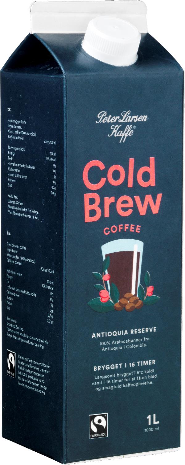 Koldbryg er kaffe, der er brygget på koldt vand i 16 timer. Brygningen fjerner alle bitterstoffer og sikrer en sød, afrundet smag af kaffe. Ingredienser: Vand, Kaffe (100 % Fairtrade Arabicabønner.)