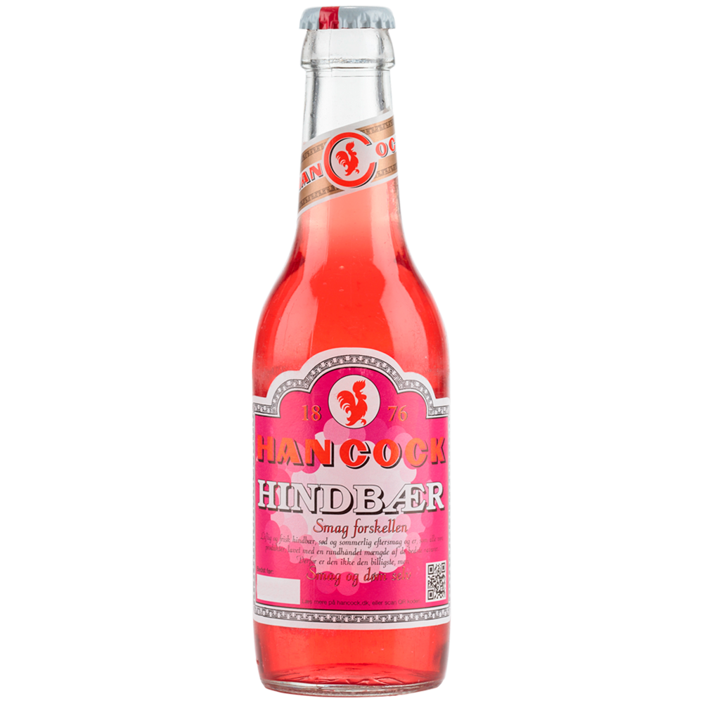 Indhold: 25,0 clAlkohol: 0,0 %Land: Danmark Der er mange andre produkter end øl og Sport Cola i Hancocks sortiment – Hindbær er en af dem. Her har vi at gøre med en hindbærsodavand med en liflig og frisk smag af hindbær og en sød og sommerlig eftersmag. Hos Hancock fremstilles alle sodavand som i ”de gamle dage", hvor der ikke er sparet på noget: Alle sodavand er lavet med en rundhåndet mængde af de bedste råvarer.