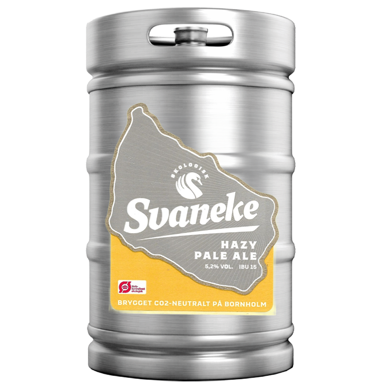 Svaneke Hazy Pale Ale, 20L, ØKO Alkohol:5,20% Indhold:20 L Enhed: Fustage Pant: Fustage 320 Antal pr. kolli: 1 Land: Danmark Svaneke Hazy Pale Ale er en økologisk, ufiltreret øl med en blød og frugtig smag. Den har en naturlig uklarhed og er fyldt med friske noter af citrus og tropiske frugter. Perfekt til dem, der elsker en aromatisk og velafbalanceret pale ale. Leveres i 20 liters fad.