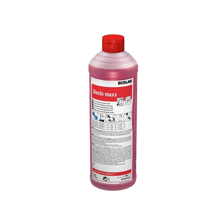 Diesin Maxx er et effektivt rengørings- og desinfektionsmiddel, der kombinerer antimikrobiel virkning med fremragende evne til at fjerne snavs og kalk. Produktet efterlader en frisk og behagelig duft og bevarer sin stærke kalkopløsende effekt selv ved fortynding. Velegnet til alle vand- og syreresistente overflader og ideelt til brug i skoler, plejehjem, hospitaler, sportshaller og svømmehaller. Dokumenteret bakteriedræbende (EN 1276 – 2%, EN 13697 – 10%, 5 min.) og svampedræbende (EN 1650 – 10%, 15 min.).