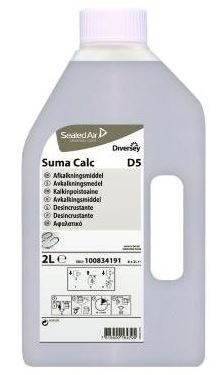 Afkalker, Suma Calc D5, 2L, er et koncentreret afkalkningsmiddel til fjernelse af kalkbelægninger på køkkenudstyr og redskaber samt til afkalkning af opvaskemaskiner. Den effektive fjernelse af kalkbelægning medvirker til at beskytte udstyr og forbedre hygiejnesikkerhed. Effektiv brugsøkonomi på grund af den koncentrerede formulering. Fjerner oxideret film og giver mat metaloverflade ny glans.