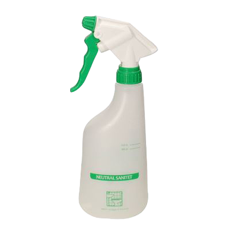 Smart bruseflaske til neutral sanitet hvor rengøringsmiddel og vand blandes, så flasken er klar til brug. Brugsopløsningen kan sprayes direkte på emnet eller rengøringskluden.