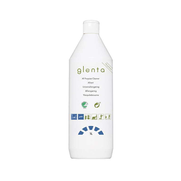 Glenta Universalrengøring u/parfume er et rengøringsmiddel, til rengøring af alle overflader der tåler vand. Rengøringsmidlet lever op til kriterierne for miljømærkning og svanemærkning. Til rengøring af inventar, rustfrit stål, spejle/glas, polishbelagte gulve, vekselvask på gulve og vægge. "NEXT - The Right Choice" mærket Indeholder ikke parfume Lever op til kriterierne for miljømærkning og svanemærkning