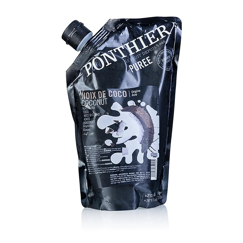 Tilbage i 1946 grundlagde André Ponthier og hans kone en virksomhed, der havde fokus på frisk frugt. Mange års arbejde og eksperimenter med forskellige frugter gjorde, at der i 1993 kom de første, frosne frugtpuréer fra Ponthier. Som årene er gået, er sortimentet nu udvidet til at rumme en lang række forskellige puréer. Ponthiers frugtpuré på kokos er en af Ponthiers signaturpuréer. Den har en fantastisk smag og cremet konsistens af sød kokos, som du kender det. Ponthier bruger kokosnødder fra Sri Lanka eller Indonesien – alt efter hvor de kan finde den bedste høst. Nyd frugtpuréen i drinks, smoothies, desserter med mere.