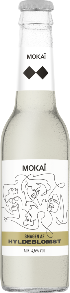 Dette er Mokais allerstørste og mest kendte Cider: Mokai Hyldeblomst. Uanset om den kommer i dåse eller flaske, så har de fleste danskere smagt denne klassiker. Den smager mildt og sødt af hyldeblomst, men er desuden afbalanceret med en smule syrlighed. Denne cider er specielt rar på en lun, hyggelig sommeraften - men fungerer også til enhver anden lejlighed. Cideren bør nydes afkøles, uanset om den serveres i glas eller drikkes lige fra flasken.