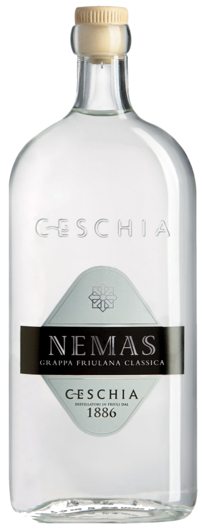 Ceshia er det ældste destilleri i Friuli med rødder helt tilbage til 1886, hvor Giacomo Ceschia begyndte at destillere rundt om på gårdene hos vinbønderne i Nimis. Don Giacomo fermenterede presseresterne ved at lægge dem på fade og dække dem med drueblade, jord og aske. fademe blev forseglet i mindst tre uger inden destillering, og i den tid gik vinbønderne og ventede på at Giacomo Ceschia skulle komme igen og destillere indholdet af deres fade. Ceschia bruger stadig de samme fremstillingsteknikker som er kendetegnende for et sandt håndværk som Ceshia er berømmet for. Nemas Grappa Friulana er opkaldt efter den gamle by Nimis og er et udsøgt destillat af forskellige presserester fra dette område. Før tapning lagres grappaen mindst to år på stålfade, hvilket giver den sin fuldendte runde smag. Grappa Nemas Friulana kan nydes som en elegant, blød og delikat afslutning på en god middag eller som ”det lille ekstra” til en kop friskbrygget kaffe.