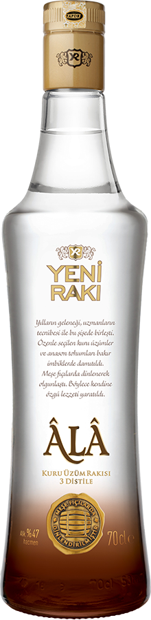 Yeni Raki Ala er fremstillet af rosiner og destilleret tre gange. Drikken har en meget lav mængde tilsat sukker, men opnår alligevel en fløjlsagtig konsistens efter modning på egetræsfade. Den har en blød og behagelig smag med tydelig anisaroma. Velegnet til at nydes ren, især hvis den er godt afkølet (mellem 8-10°C). Yeni Raki Ala præsenteres i en smuk flaske, og er kendt som en af Tyrkiets nationaldrikke.