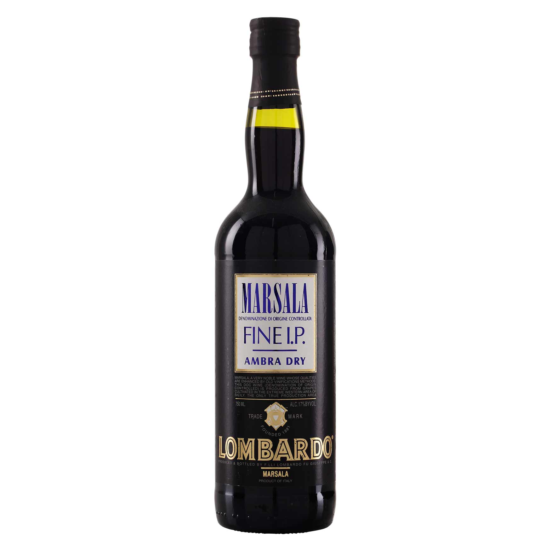 Denne Marsala Lombardo Ambra Dry er en Italiensk dessertvin produceret på druerne Catarratto, Grillo og Inzolia, der er dyrket på Sicilien. Det er en typisk Marsala-vin på grund af den karakteristiske gule farve, som på italiensk kaldes ‘ambra’. Ambra svarer til det engelske ‘amber’, og det betyder på dansk rav. Den karakteristiske Marsala-farve er derfor en dyb, gullig ravfarve, som man får frem ved at tilsætte ‘mosto cotto’. Mosto cotto er en sød sirup lavet på de druerester, man får fra produktionen. Marsala Lombardo Ambra er lagret et år på egetræsfade og har en alkoholprocent på 17. Den kan drikkes alene, men bruges også ofte som smagstilsætter i madlavning.
