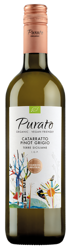 Purato-vinen kan beskrives som "Moder Natur på flaske" – helt fri for unaturlige tilsætningsstoffer. Selv flasken og emballagen er bæredygtig med 100 % miljøvenlige etiketter og kapsler og 85 % genbrugsglas. Catarratto-druen, som næsten kun dyrkes på Sicilien, er kendt for sin aromatiske karakter og friske syre, især når den høstes tidligt. Sammen med Pinot Grigio giver den en tør, aromatisk vin med god fylde. Vinen har en lys farve med et grønligt skær, en duft af grønne æbler og en halvtør, fyldig smag.