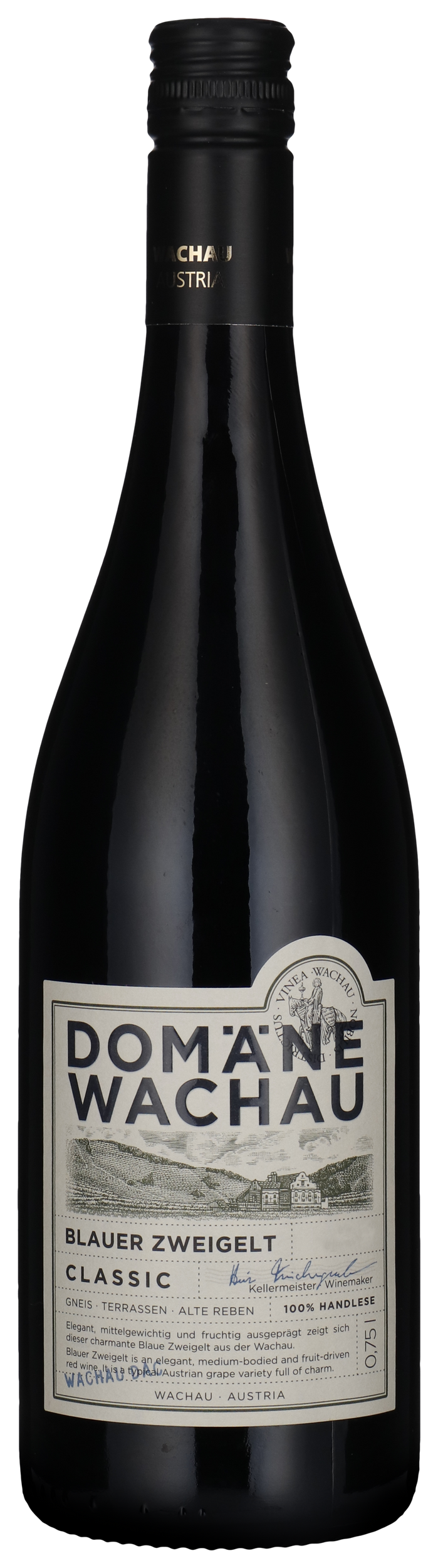 Blauer Zweigelt er en af Østrigs bedste blå druer og stammer fra en krydsning af Blaufränkisch og St. Laurent. Druerne dyrkes på terrasser langs Donau-floden omkring Weissenkirchen, Wösendorf og Joching, hvor jordbundsforholdene er optimale. Høsten foregår manuelt i oktober, og efter druerne er afstilket, gærer de og lagrer på store træfade. Dette giver en velafbalanceret vin med bløde tanniner. Vinen har en smuk rubinrød farve og en frisk duft af brombær og kirsebær. Smagen er let krydret og elegant, hvilket gør den ideel til retter med kalvekød og mildere kødretter.