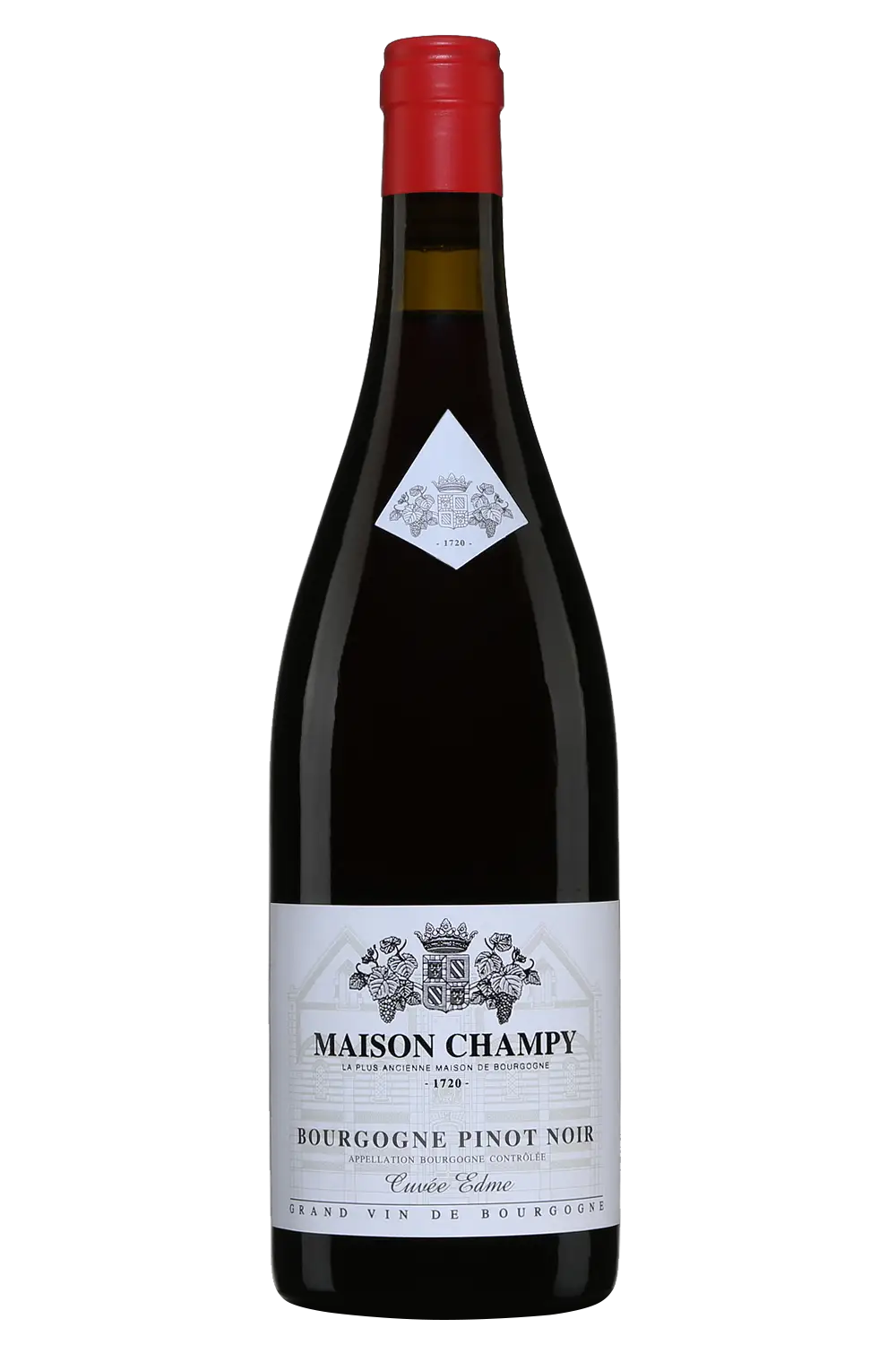 Maison Champys Bourgogne Pinot Noir “Cuvée Edme” er en klassisk Pinot Noir fra håndhøstede druer, primært fra Volnay, Santenay og Ladoix i Côte de Beaune. 14 måneder på franske egetræsfade giver vinen en rubinrød farve med violet skær. Bouqueten er fyldt med noter af mørke bær, vanilje og skovbund, mens smagen er frisk, rund og smidig med bløde tanniner. Nyd den til lyst fjerkræ, svinekød eller rødt kød i flødesauce. Maison Champy, grundlagt i 1720 og Bourgognes ældste vinhus, arbejder økologisk og biodynamisk med stort fokus på miljø og bæredygtighed.